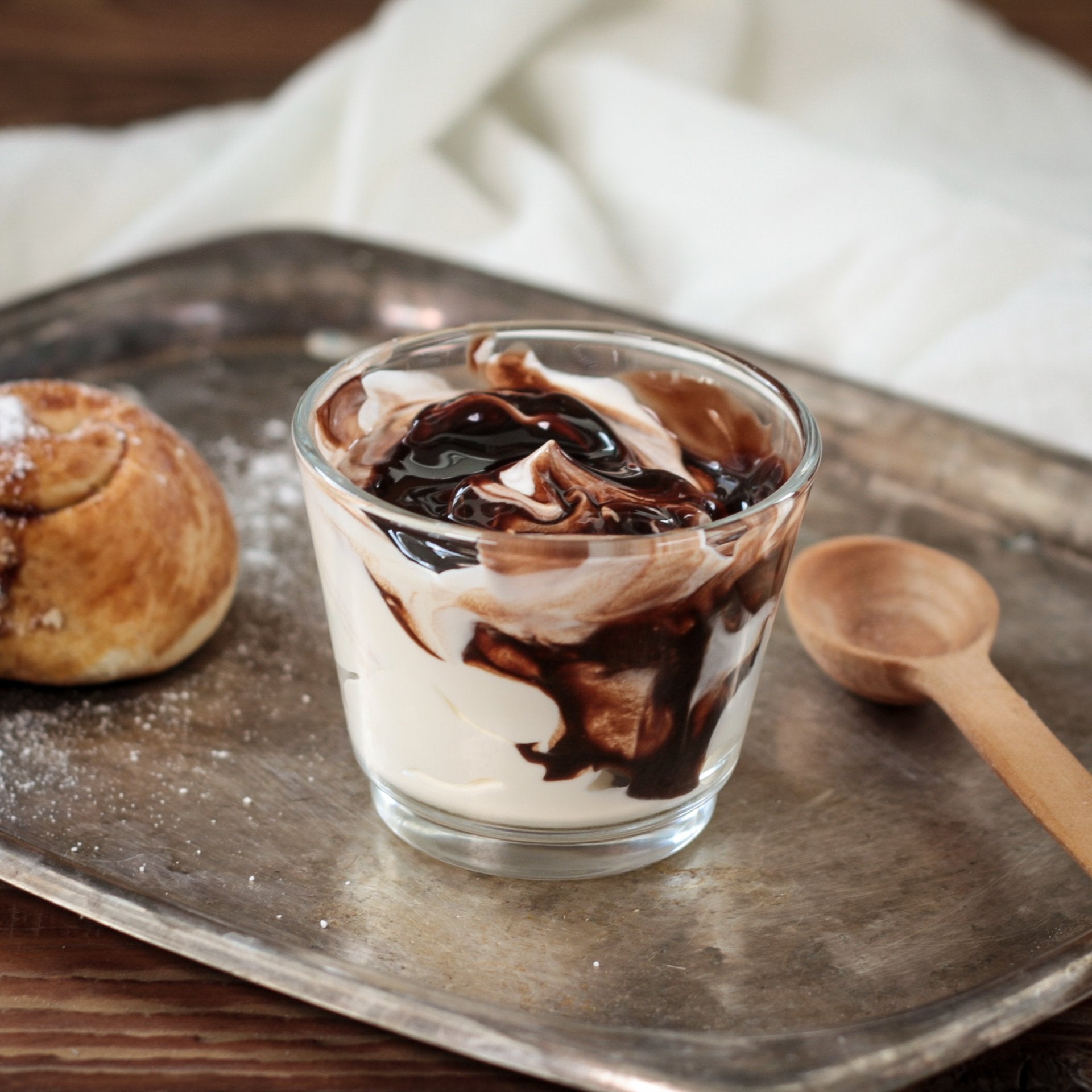 Zloženie: pasterizované mlieko, smotana, jogurtová kultúra, ochucujúca zložka 20% (cukor, voda, glukózo-fruktózový sirup, kakaový prášok so zníženým obsahom tuku 4,2%, čokoládový prášok 2,5%, zahusťovadlo: E1422, regulátor kyslosti: kyselina citrónová.)