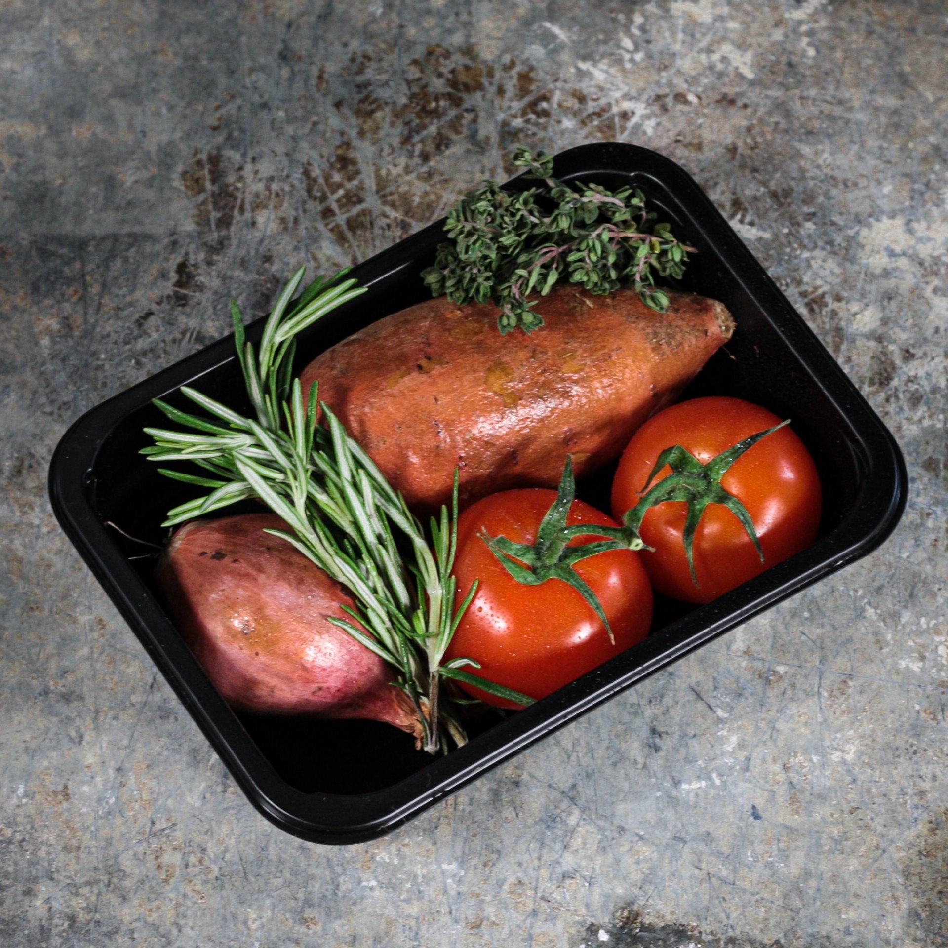 V párty balíčku nájdete: 2 ks paradajky, 2 ks batáty, 2 ks šalotka, rozmarín, tymián.
