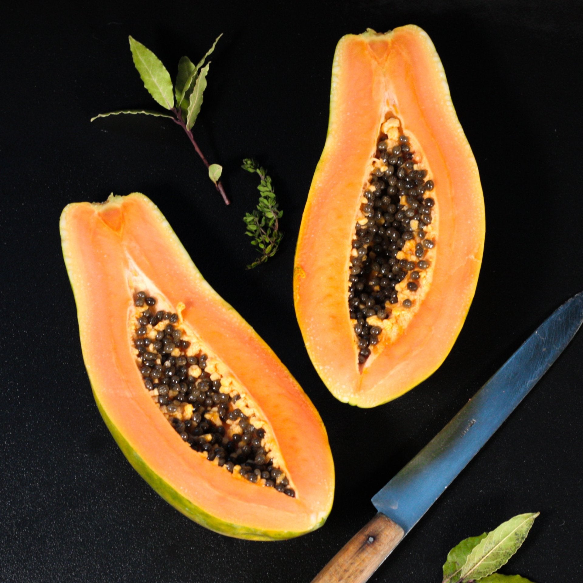 Tropické ovocie Papája FORMOSA je jedným z najväčších druhov papáje. Elipsovitý tvar sladkého ovocia vás očarí. Mäkká dužina chutí podobne ako ananásový melón s broskyňou, najlepšie si ju vychutnáte len tak samotnú, no výborne sa hodí na prípravu smoothies, zmrzlín a exotických ovocných šalátov. Keď papáju prerežete pozdĺžne v jej vnútri objavíte čierne guľaté semiačka, ktoré môžete vysušiť a použiť ako korenie.Pretiahnuté oválne duté plody papaya formosa dorastajú do dĺžky až 80 cm a váhy až 9 kg, vyvážajú sa však plody do hmotnosti 2 kg. Je to jeden z najlahodnejších druhov papáje. Papaya gold je o poznanie menší a plod má skôr hruškovitý tvar. Obe odrody majú zelenožltú farbu a vo vnútri sa nachádza ružovooranžová dužina s malými okrúhlymi čiernymi semienkami, sústredenými uprostred. Dužina je medovo sladká a sladkavo voňavá. Má maslovú štruktúru a chuťou pripomína ananásové melóny. Semená majú ostrú korenenú chuť a môžu byť použité ako náhrada čierneho korenia.