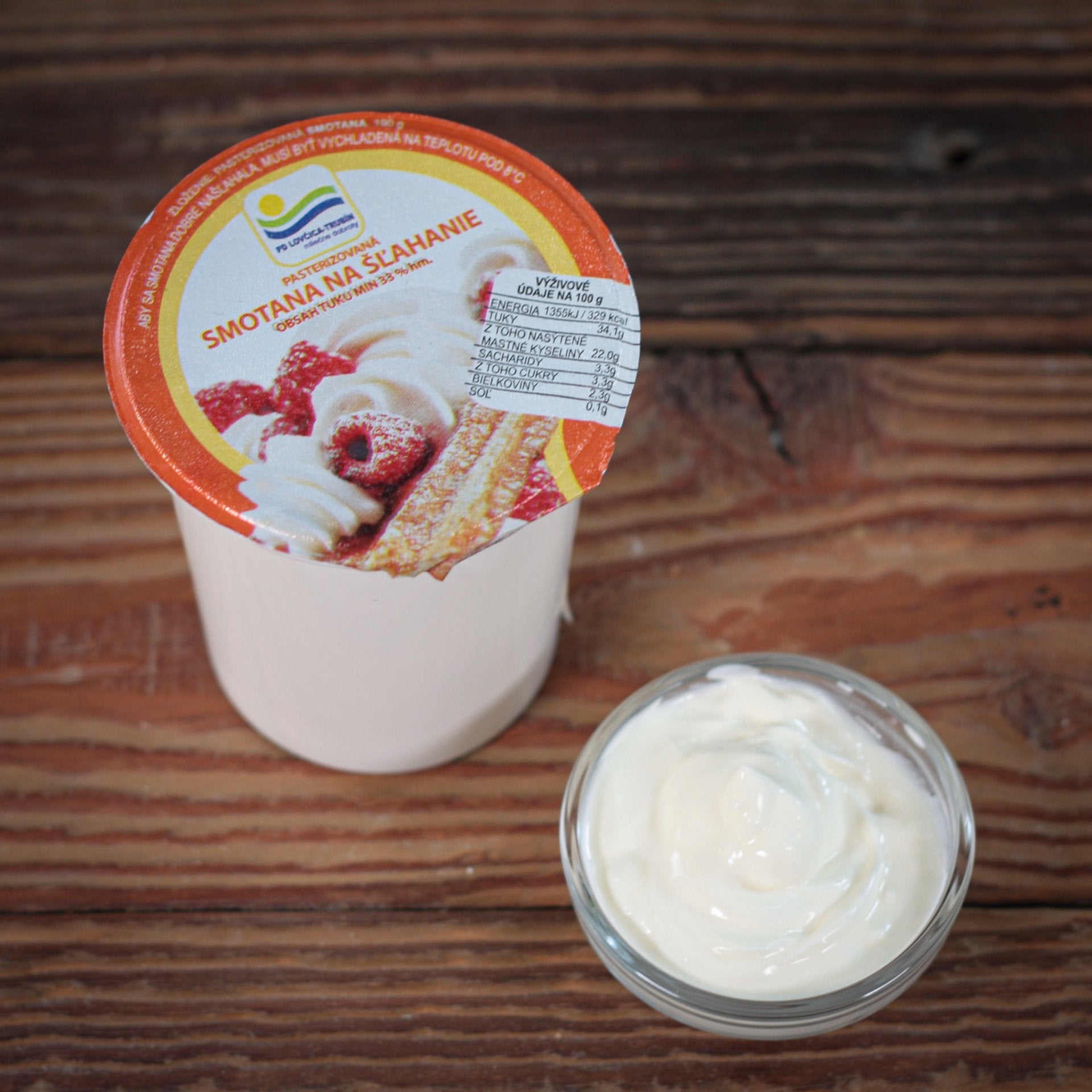 Sladká smotana na šľahanie 33% - 190 ml. Vhodná na varenie aj prípravu sladkých zákuskov.